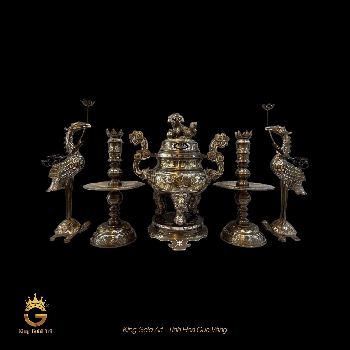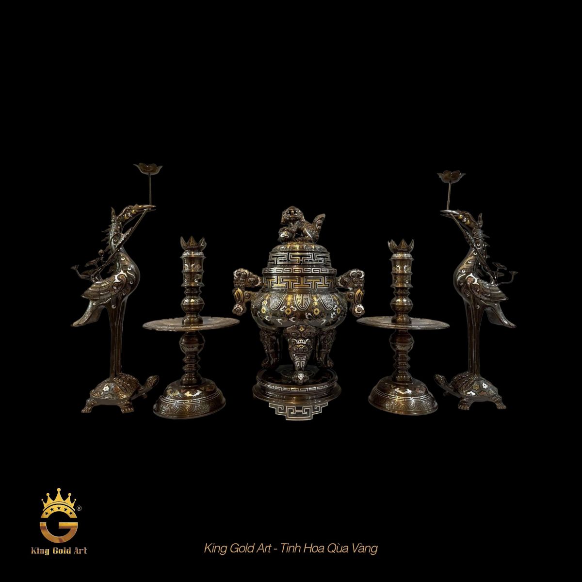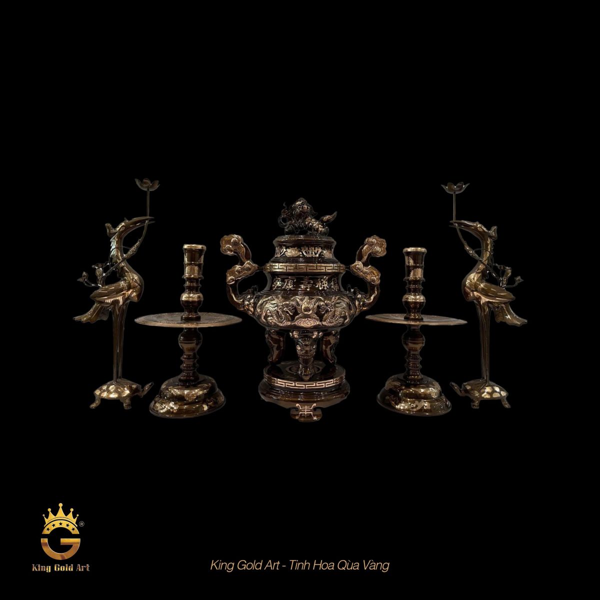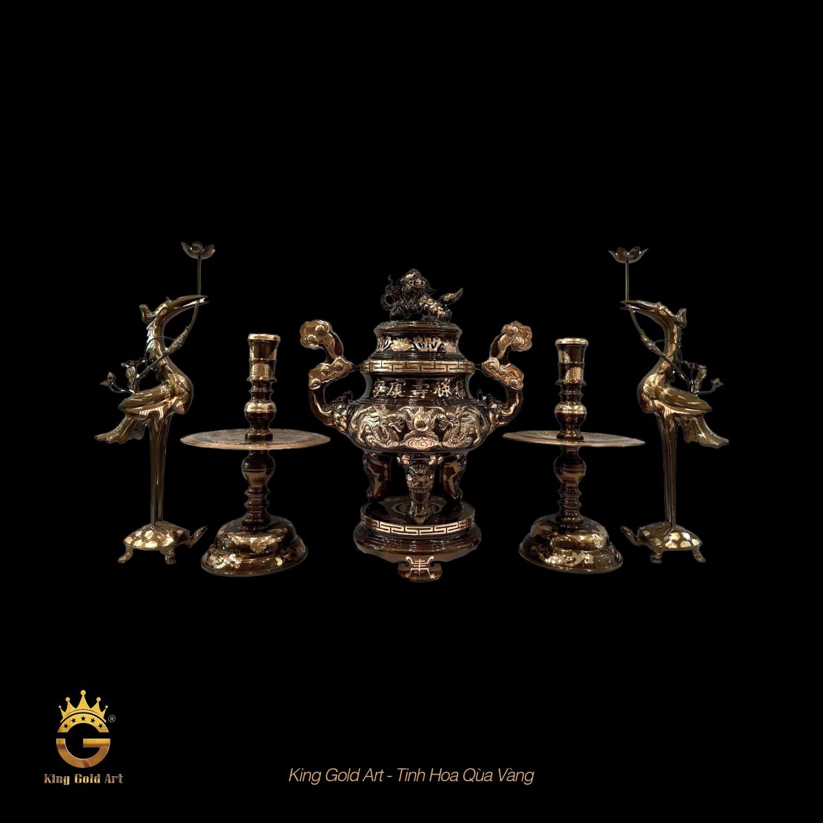 Bộ đồ thờ ngũ sự phong thủy bằng đồng, đồng mạ vàng cao cấp – Tâm linh tinh hoa trong từng chi tiết