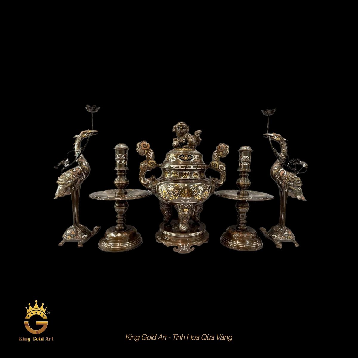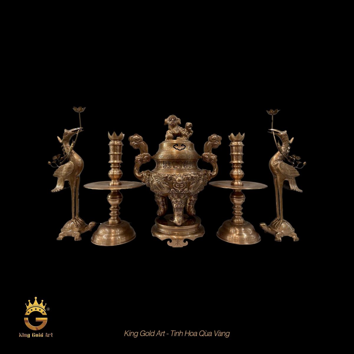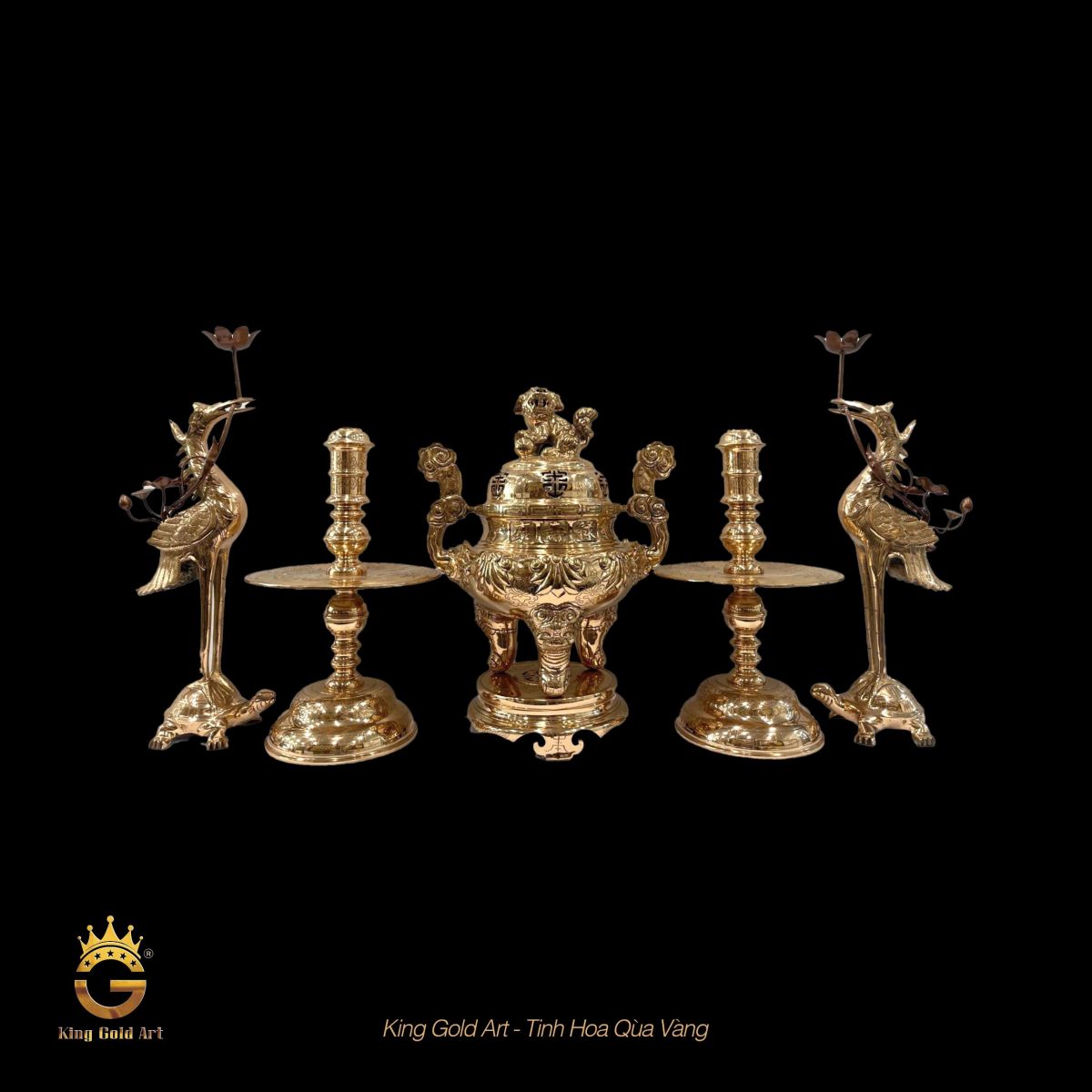 King Gold Art – Đồ Đồng Việt là thương hiệu uy tín chuyên sản xuất và cung cấp các sản phẩm đồ thờ cúng bằng đồng cao cấp, đặc biệt là bộ đồ thờ ngũ sự mạ vàng 24k đạt độ tinh xảo cao, chất lượng bền lâu, chế tác theo yêu cầu.