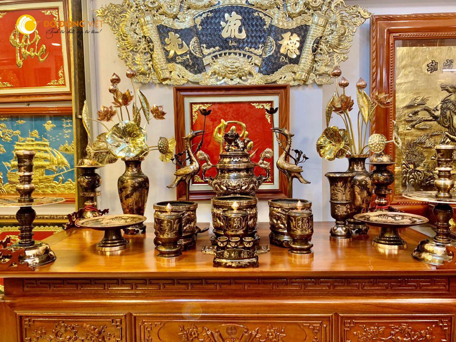 Việc bổ sung bộ đồ thờ bằng Đồng (Kim loại), đặc biệt là Đồng Mạ Vàng giúp hoàn thiện vòng tròn ngũ hành. Hành Kim đại diện cho sự cứng cỏi, ngăn chặn luồng khí xấu và thu hút tài lộc.