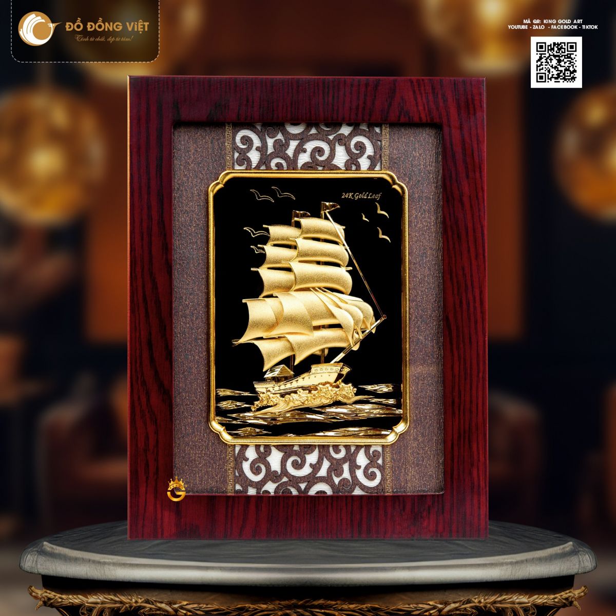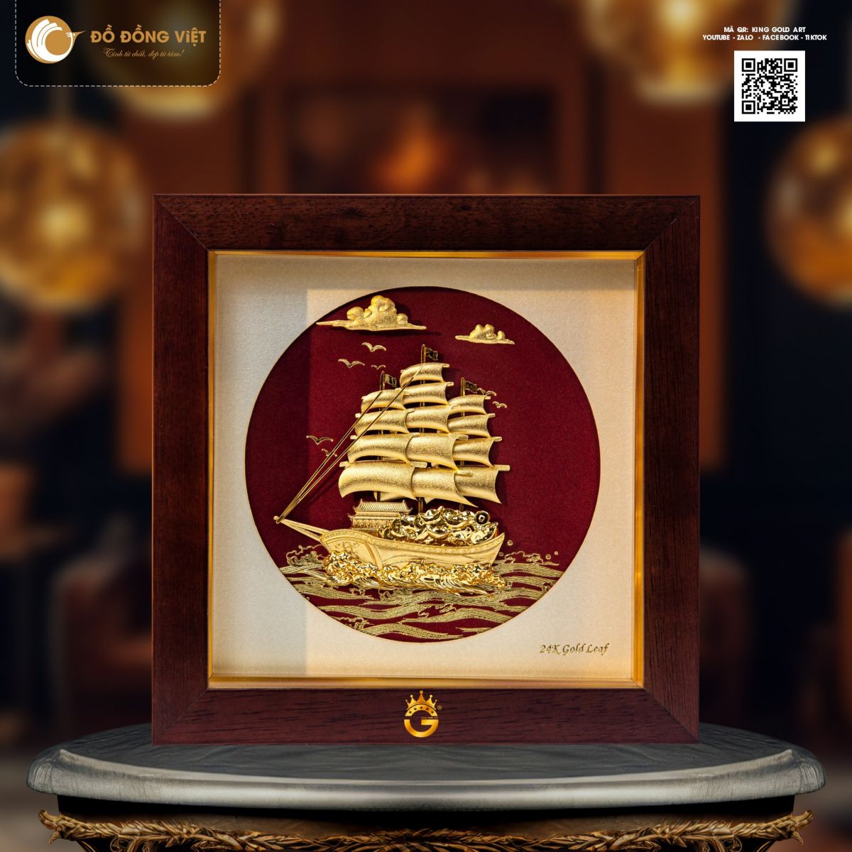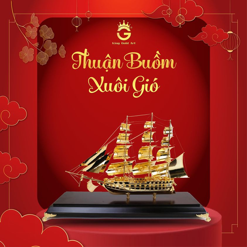 Ngoài biểu tượng ngựa, tranh thuyền buồm bằng đồng mạ vàng 24K cũng là dòng quà tặng phong thủy được ưa chuộng trong năm 2026. Thuyền buồm tượng trưng cho hành trình kinh doanh thuận lợi, “thuận buồm xuôi gió”, tài lộc cập bến an toàn. Đây là món quà đặc biệt phù hợp dành tặng đối tác, khách hàng hoặc doanh nhân trong dịp khai xuân, khai trương, kỷ niệm thành lập.