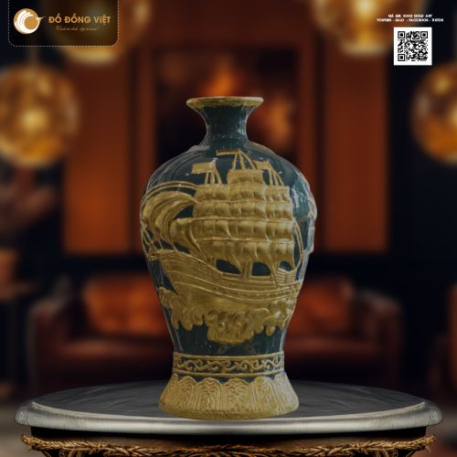 Bình gốm của Đồ Đồng Việt không chỉ được làm từ những nguyên liệu gốm cao cấp mà còn được dát vàng lá 24K, đảm bảo tính thẩm mỹ và độ bền vượt trội. Những hoa văn, họa tiết trên bình đều được các nghệ nhân chế tác thủ công, mang đậm dấu ấn văn hóa truyền thống Việt Nam. Đặc biệt, với lớp vàng lá dát tinh xảo, bình gốm trở thành điểm nhấn hoàn hảo cho không gian sống, thể hiện gu thẩm mỹ tinh tế của gia chủ.