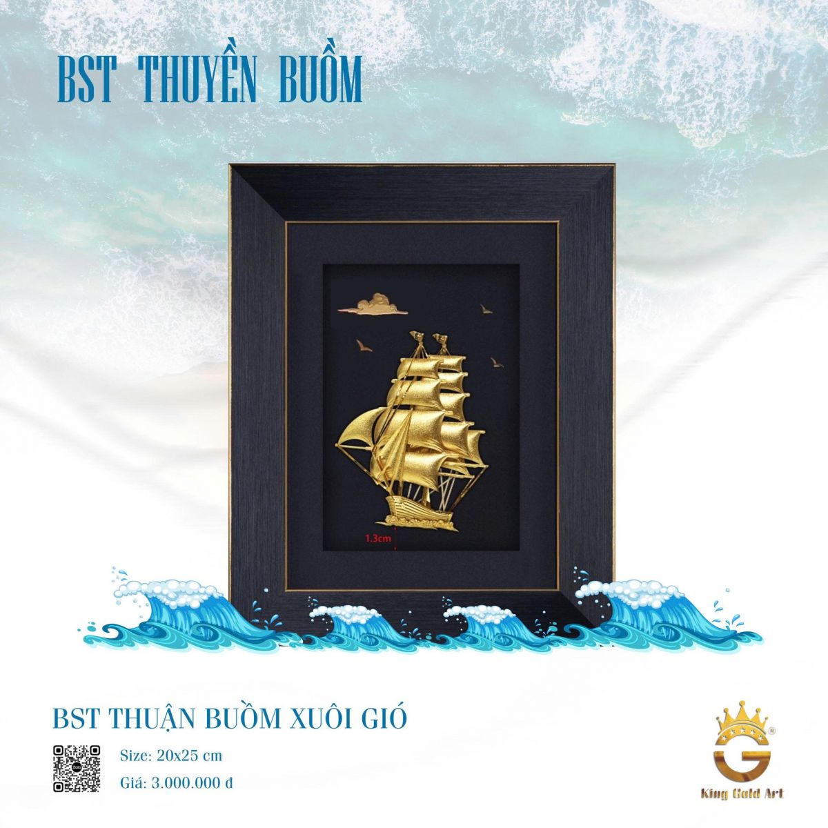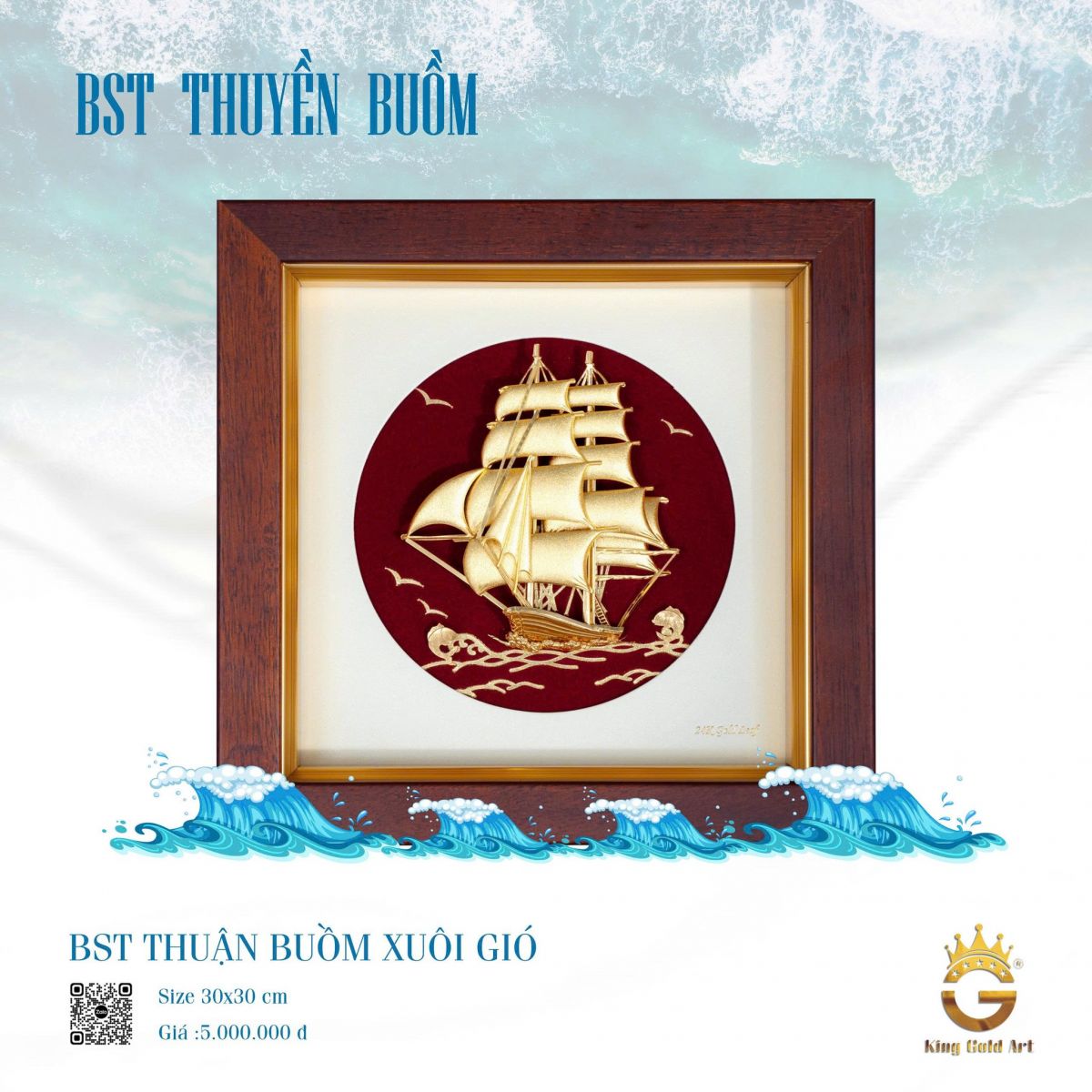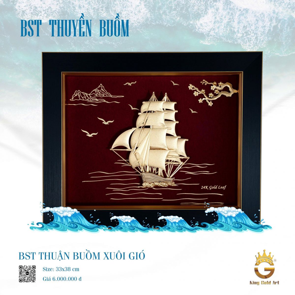 Không chỉ mang ý nghĩa phong thủy sâu sắc, những tác phẩm tranh thuyền buồm mạ vàng còn mang giá trị nghệ thuật cao. Các chi tiết cánh buồm, thân thuyền hay những con sóng đều được chế tác tỉ mỉ, tạo nên tổng thể hài hòa và sống động, mang lại cảm giác mạnh mẽ nhưng vẫn đầy tinh tế.
