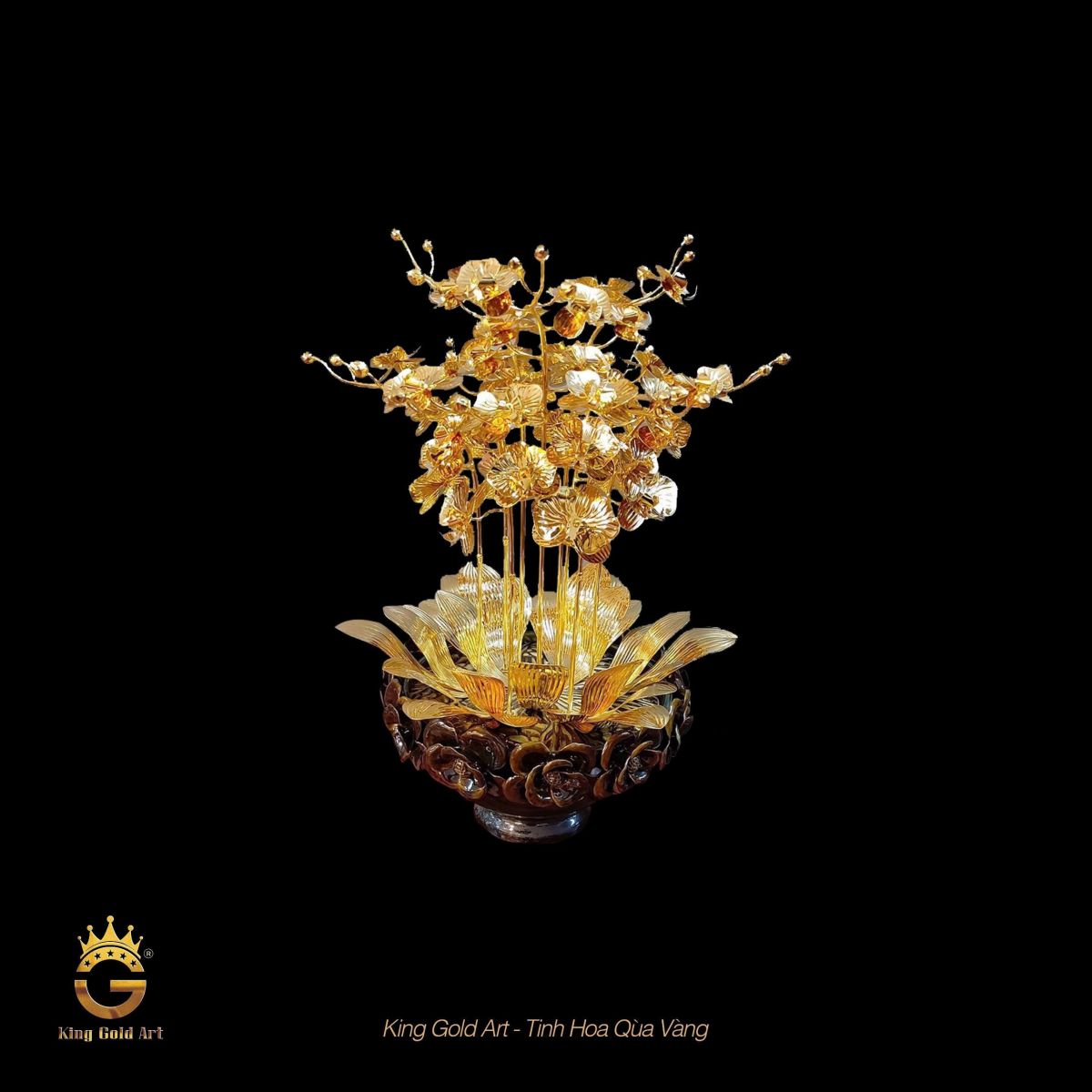 Sau khi hoàn thành phần tạo hình, chậu lan được dát vàng 24K bằng kỹ thuật hiện đại, đảm bảo lớp vàng bám chắc và giữ được độ bóng lâu dài. Quá trình này đòi hỏi sự cẩn thận và chính xác, nhằm đảm bảo chất lượng hoàn hảo cho sản phẩm cuối cùng.