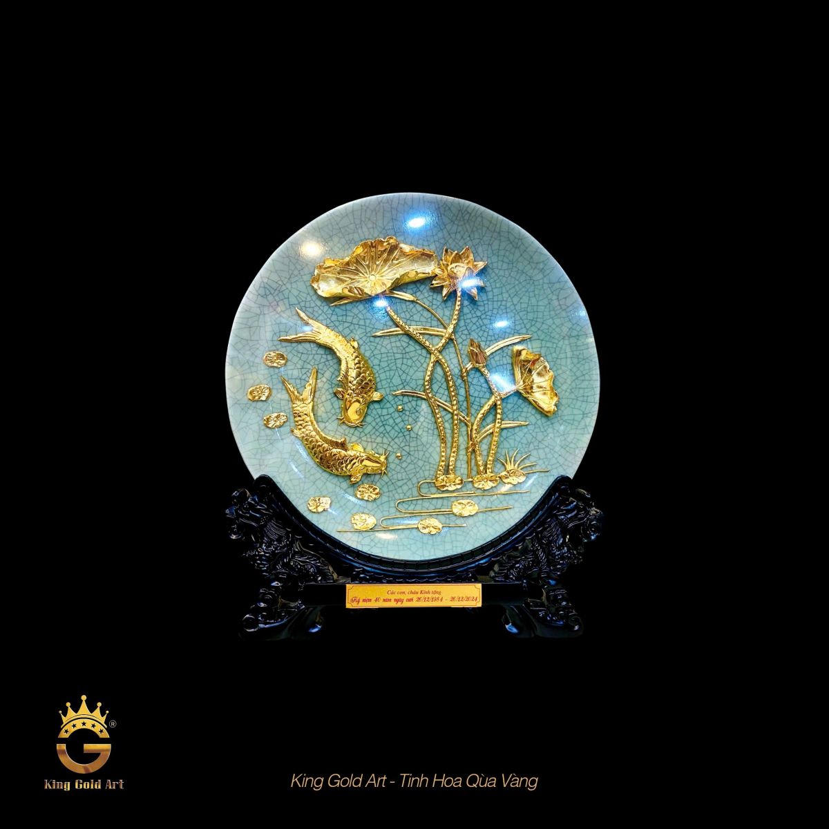 Đĩa gốm Cá chép hoa sen mạ vàng: Sự giao thoa giữa nghệ thuật Gốm và tinh hoa Vàng 24k