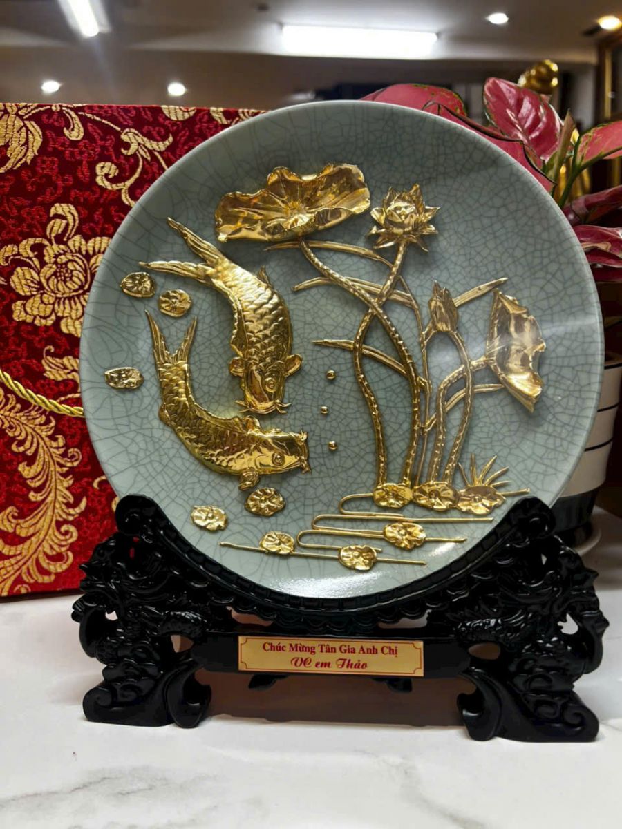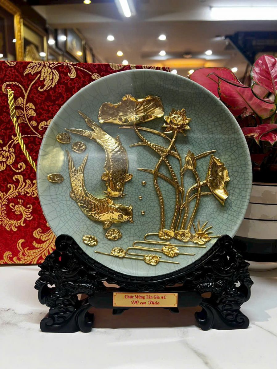 - Đĩa gốm Cá chép hoa sen mạ vàng: Sự giao thoa giữa nghệ thuật Gốm và tinh hoa Vàng 24k