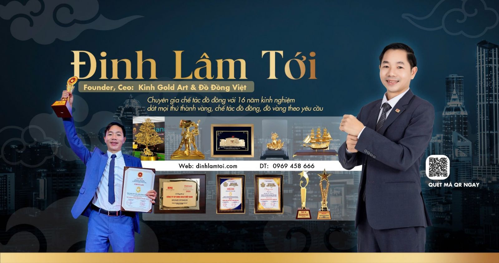 Trong dòng chảy văn hoá Việt Nam, nghề đúc đồng không chỉ là một ngành thủ công mà còn là nơi lưu giữ ký ức, tín ngưỡng và bản sắc dân tộc. King Gold Art ra đời như một cầu nối giữa quá khứ và hiện tại, nơi những giá trị cổ truyền được tái hiện bằng tư duy thẩm mỹ hiện đại. Người sáng lập – Đinh Lâm Tới – xuất thân từ Đại Bái, mang theo toàn bộ tinh hoa nghề vào từng sản phẩm.
