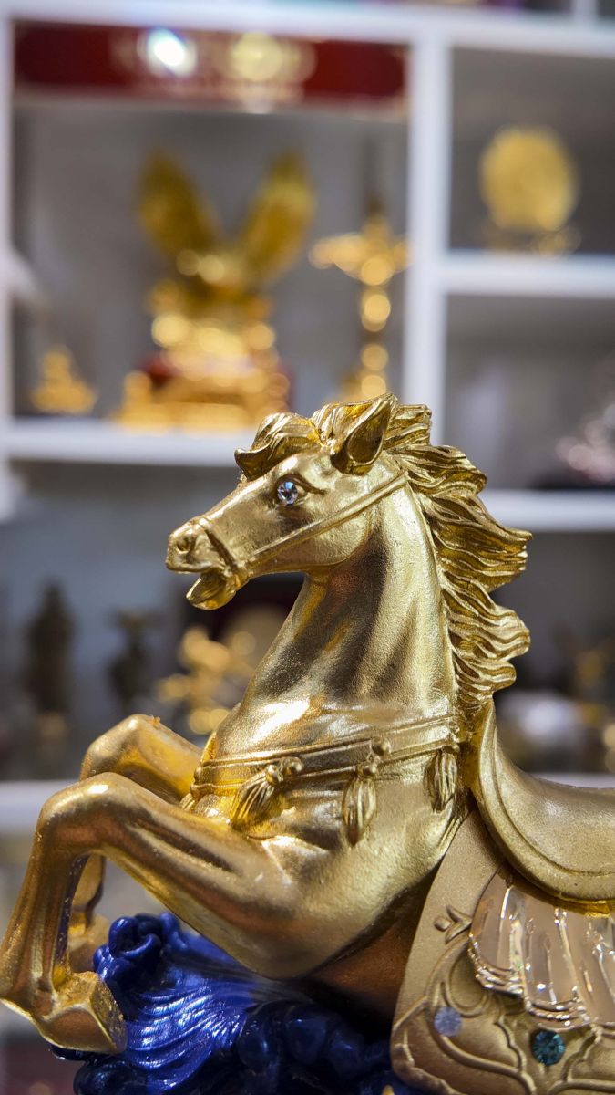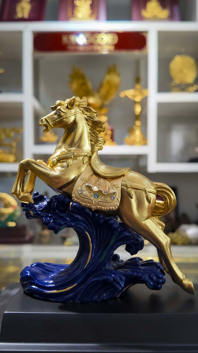 Với khí thế “phi vân” – bay lên mây, bức tượng còn mang hàm ý cao quý, tự do, đầy nội lực. Đây chính là lý do vì sao nhiều doanh nhân, nhà lãnh đạo và người khởi nghiệp chọn tượng ngựa mạ vàng làm vật phẩm phong thủy chủ đạo.