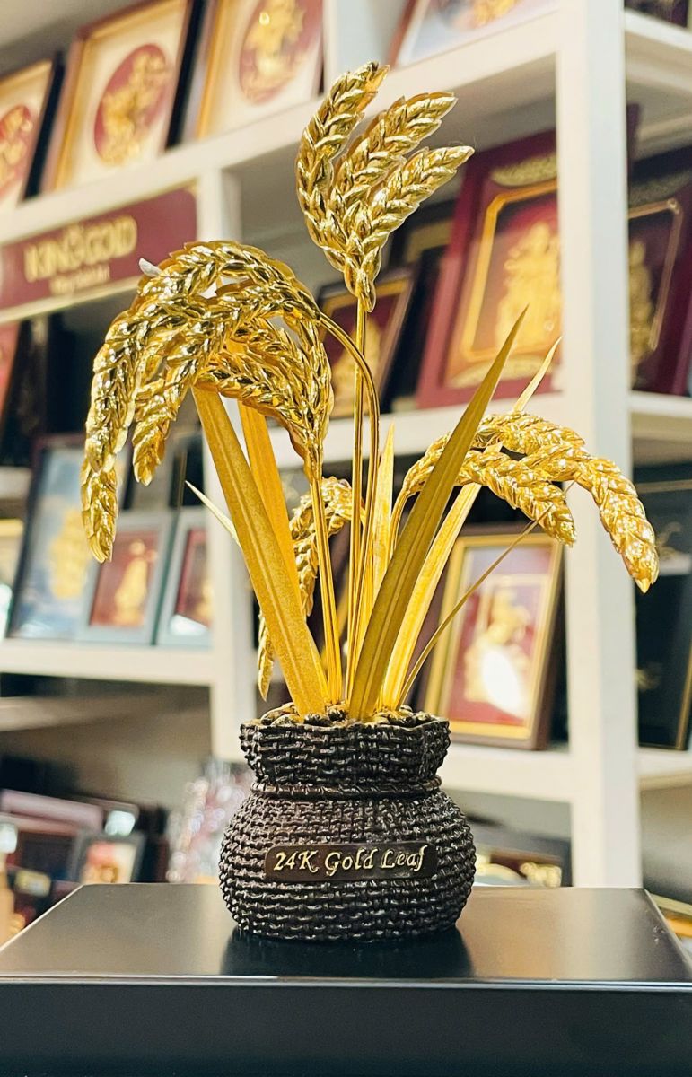 Lúa vàng 24K King Gold Art được sản xuất bằng quy trình thủ công kết hợp công nghệ hiện đại, đảm bảo từng đường nét đạt độ hoàn thiện cao. Chất liệu đồng cao cấp giúp sản phẩm có độ bền vượt trội, hạn chế oxy hóa và giữ được vẻ sáng đẹp lâu dài.