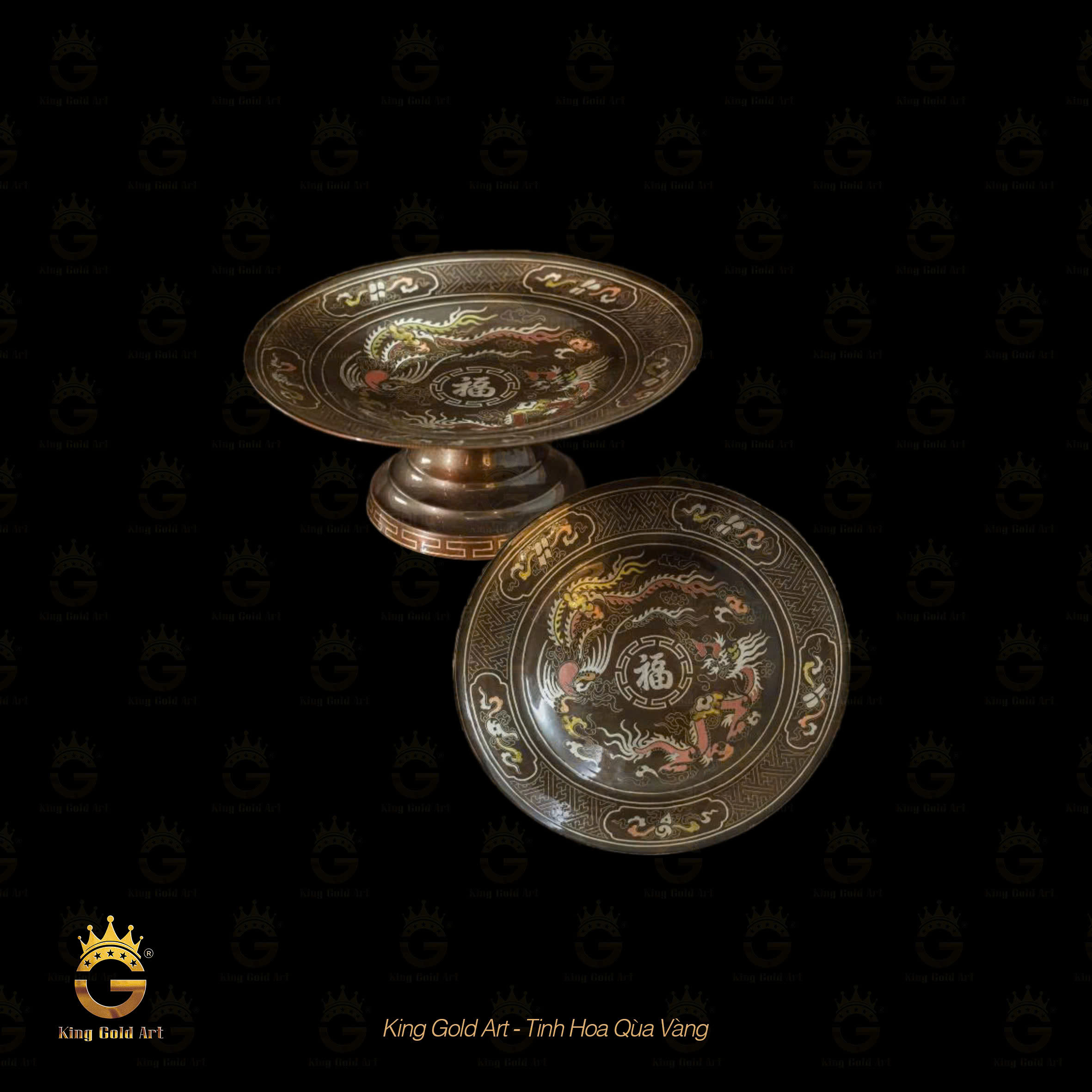 Tên sản phẩm: Mâm bồng đồng đỏ khảm tam khí