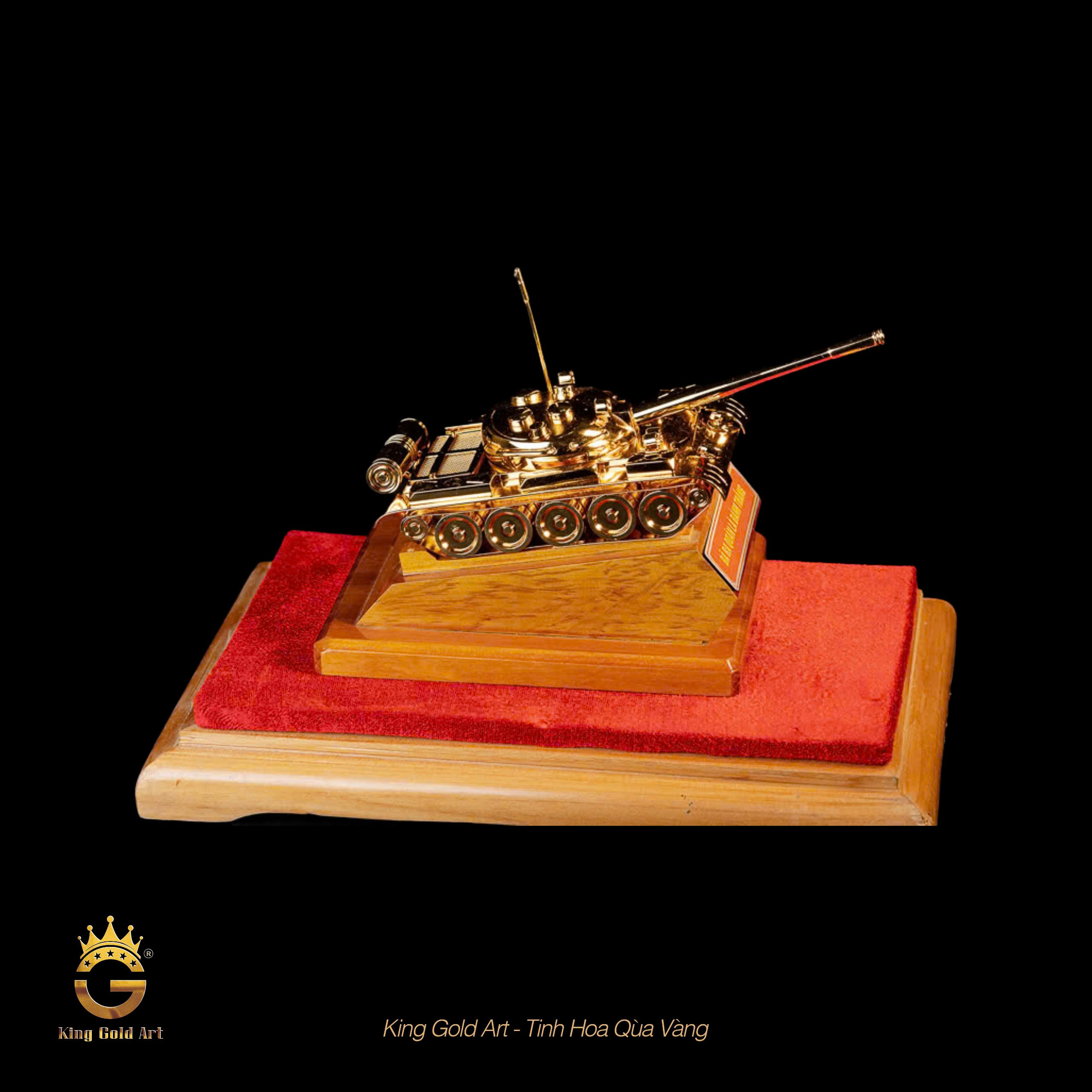 King Gold Art - Đồ Đồng Việt mang tinh thần đó thổi hồn vào mô hình xe tăng đồng mạ vàng, tái hiện sinh động từng chi tiết như bánh xích, thân xe, nóng súng. Sản phẩm không chỉ là quà tặng kỷ niệm, mà còn là tác phẩm nghệ thuật tinh xảo, ghi dấu niềm tự hào với dân tộc.