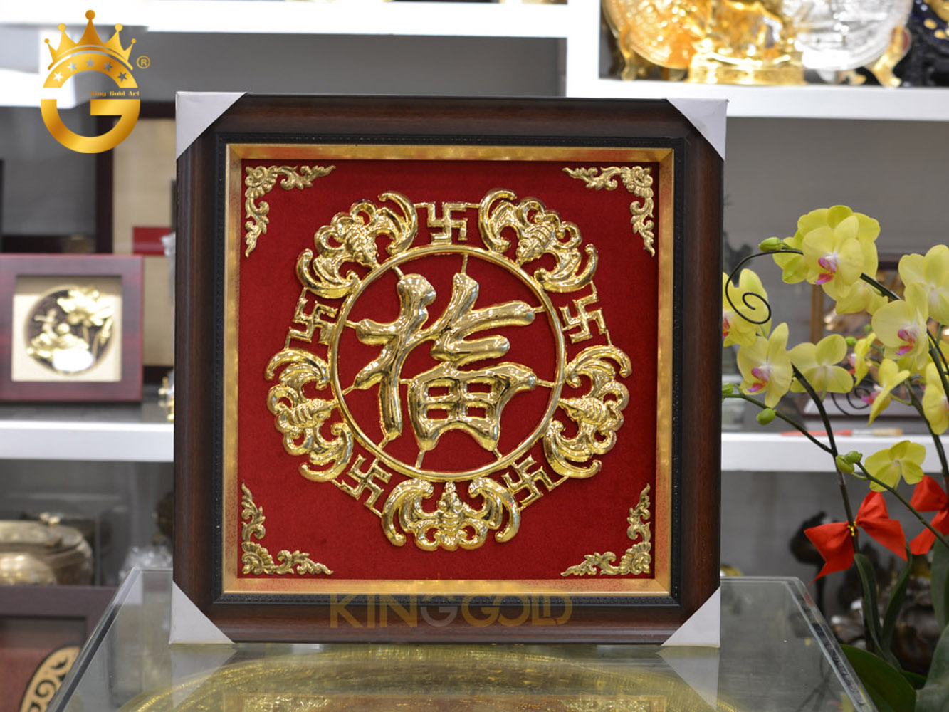 King Gold Art là một thương hiệu nổi bật trong ngành sản xuất tranh mạ vàng cao cấp, với các sản phẩm tranh mạ vàng độc đáo và tinh xảo. Các bức tranh chữ Phúc mạ vàng của King Gold Art không chỉ là những tác phẩm nghệ thuật đẳng cấp mà còn mang lại giá trị phong thủy sâu sắc. Với tay nghề thủ công tỉ mỉ và chất liệu vàng cao cấp, các sản phẩm của King Gold Art luôn được khách hàng đánh giá cao về chất lượng và tính thẩm mỹ.