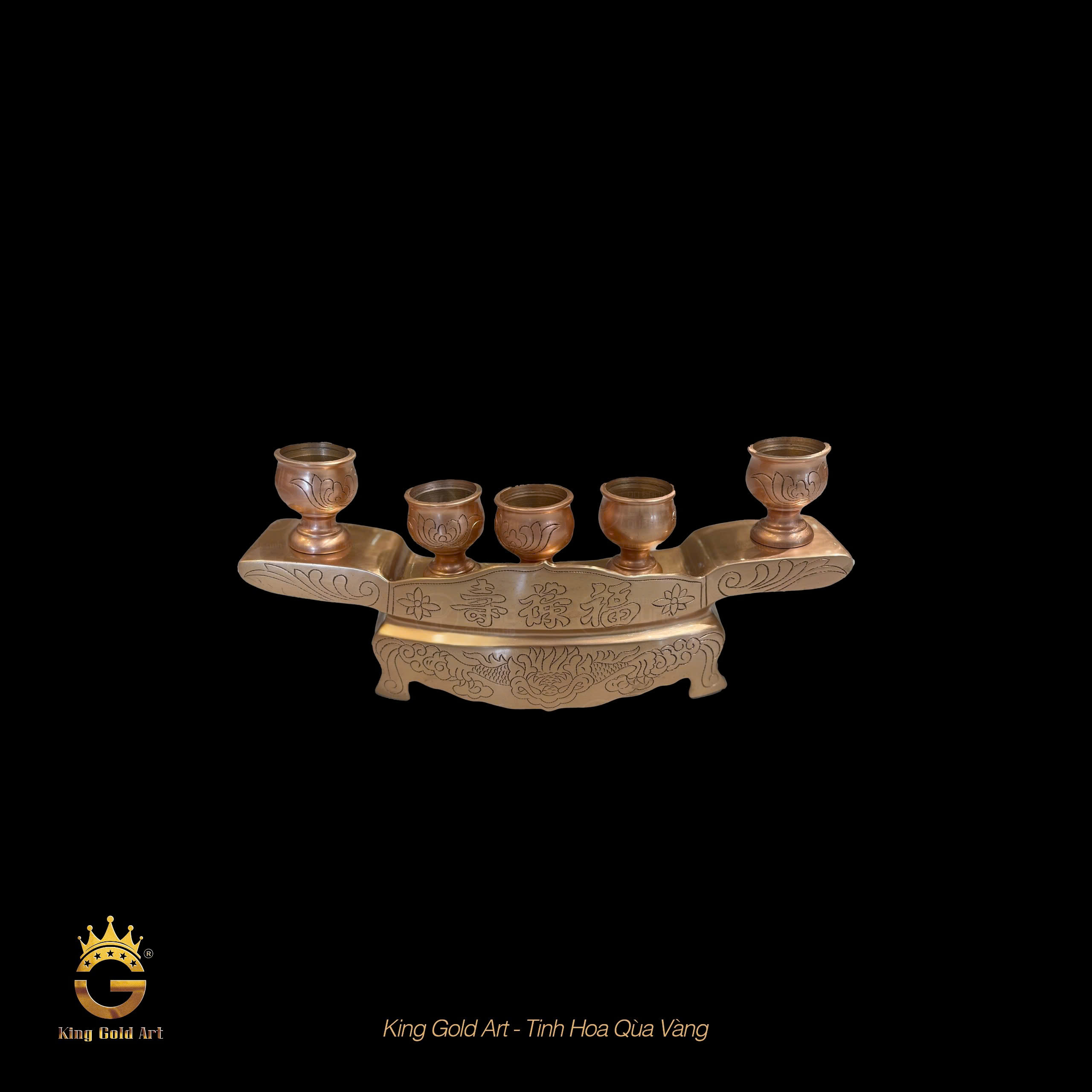 Ngai 5 chén: Phù hợp bàn thờ lớn, mang ý nghĩa ngũ hành, đầy đủ sinh khí.