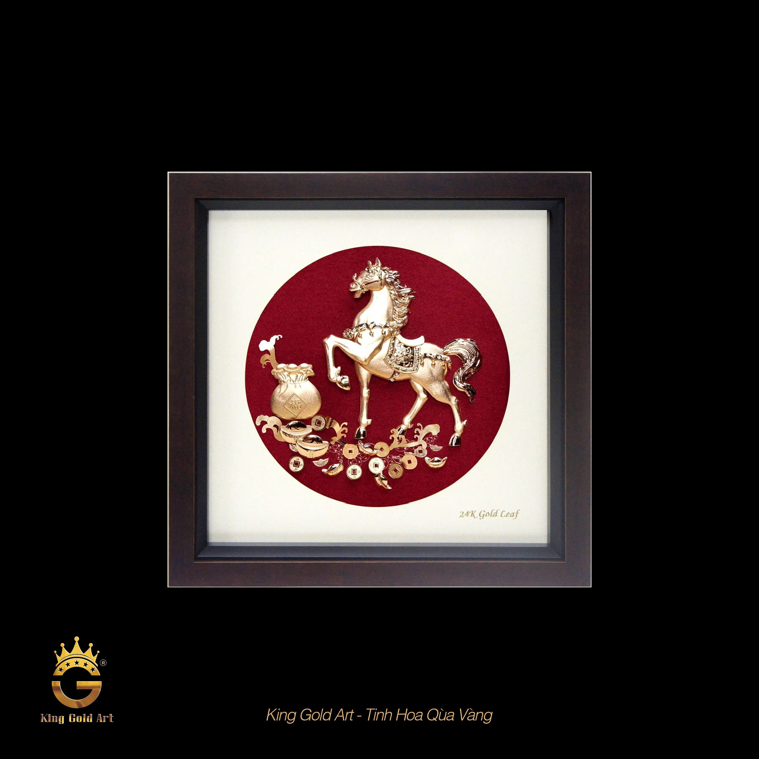 Bên cạnh tượng ngựa, chúng tôi còn mang tới các phiên bản “tranh ngựa đồng mạ vàng”: tranh khắc “nhất mã phi thiên” hoặc “ngựa phi nước đại”, nền dát vàng lấp lánh. Khung tranh gỗ cao cấp, lớp kính bảo vệ, phù hợp treo trong phòng họp, sảnh doanh nghiệp hoặc tặng làm quà tặng doanh nghiệp 2026 cho ban lãnh đạo để mỗi lần nhìn vào như một lời nhắc về động lực, về năm mới đầy triển vọng.