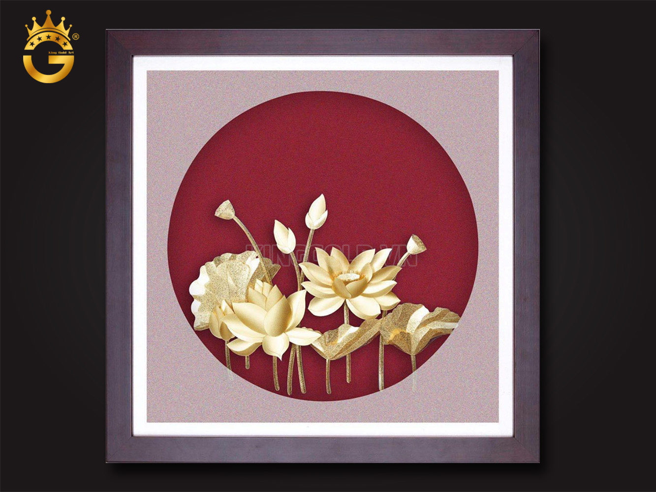 Tranh sen dát vàng được thiết kế tinh xảo, phối màu trang nhã, kích thước đa dạng phù hợp với mọi không gian.