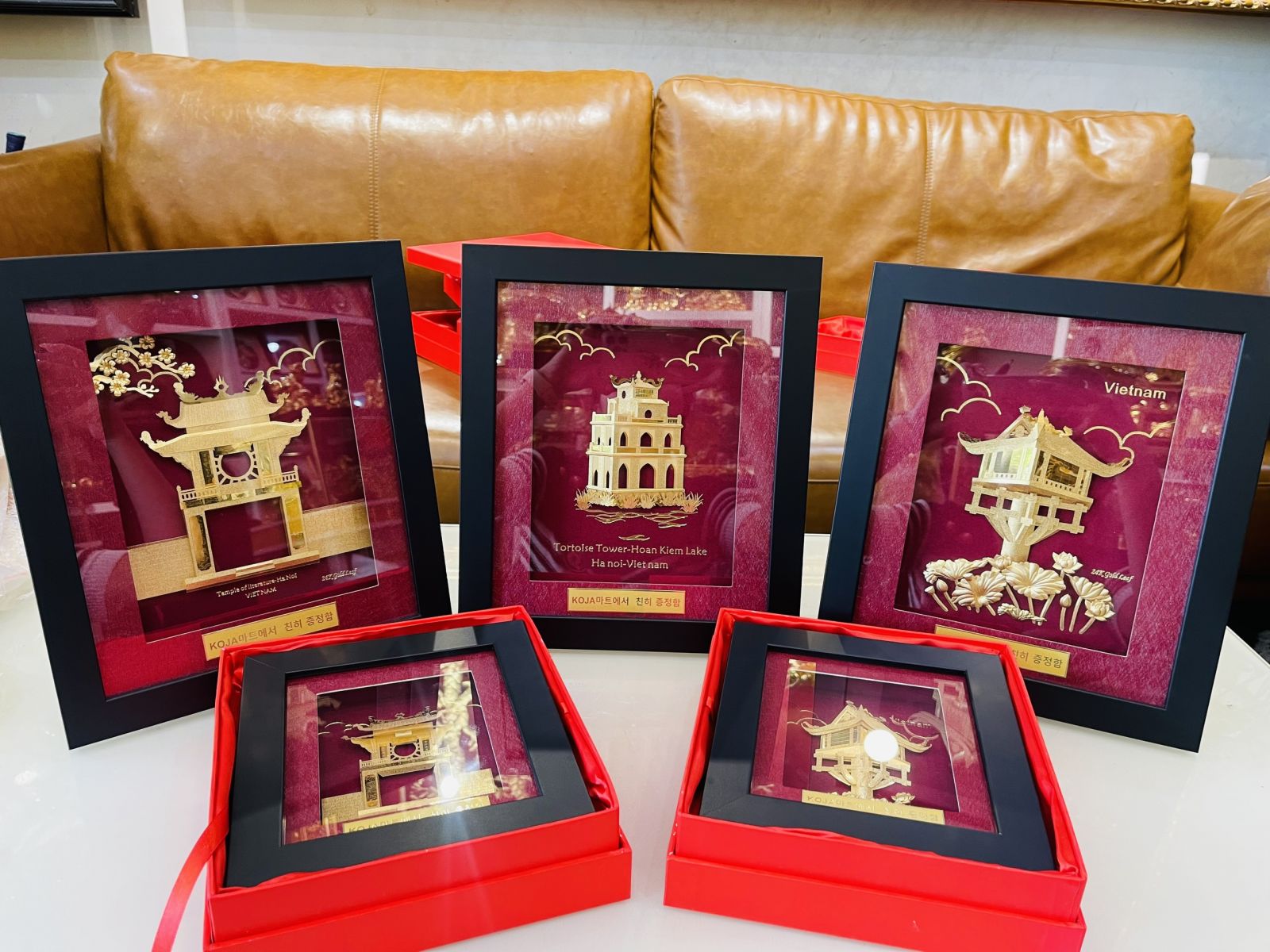 Khuê Văn Các là biểu tượng chính thức của Thủ đô Hà Nội. Một bức tranh Khuê Văn Các dát vàng 24k tinh xảo gửi gắm lời chúc về sự sáng suốt, thành công trong sự nghiệp và tầm nhìn chiến lược. Đây là món quà cực kỳ phù hợp cho các lãnh đạo cấp cao hoặc cố vấn người Hàn Quốc.