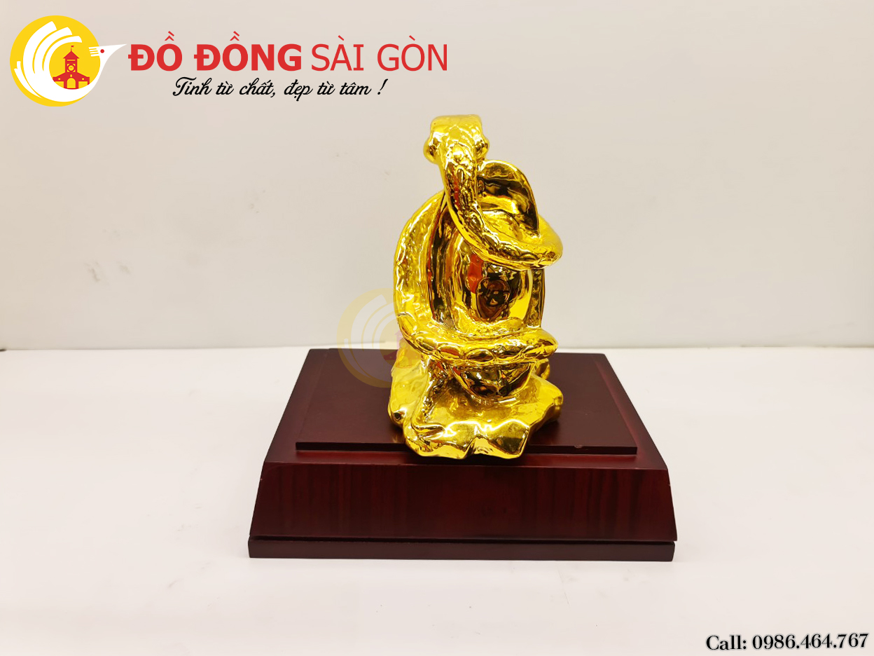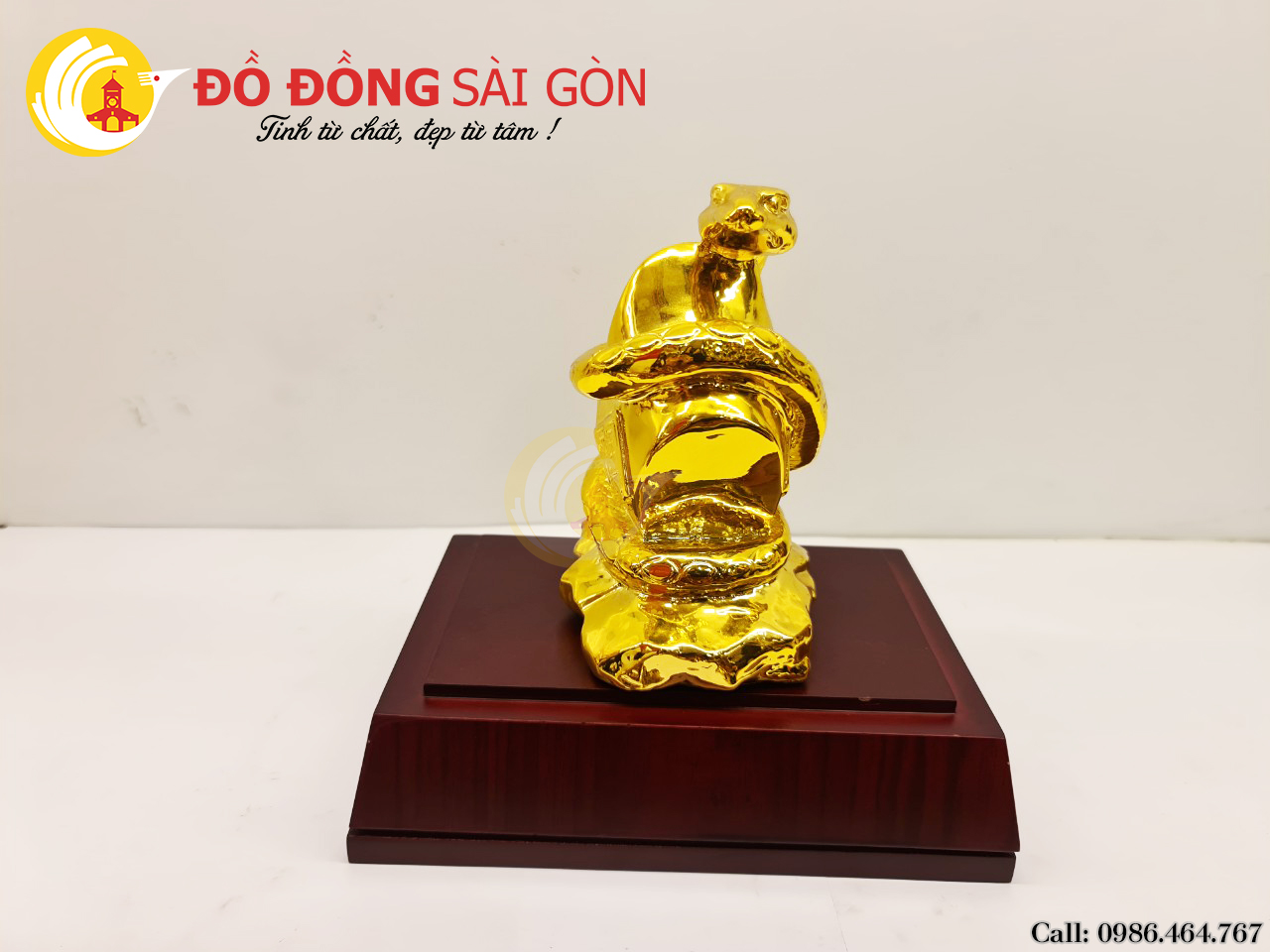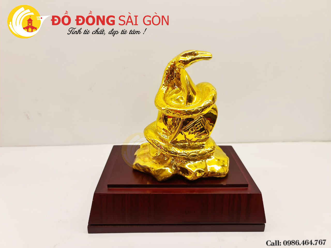 Tượng đồng rắn vàng vừa mang lại giá trị thẩm mỹ cao, vừa đảm bảo độ bền, độ nặng chắc tay – xứng đáng là sản phẩm trang trí cao cấp cho văn phòng, phòng khách, hay cửa hàng. Ngoài ra, phần đế gỗ chắc chắn, tinh tế, nâng tầm tổng thể bức tượng, tôn lên vẻ đẹp sang trọng, quyền quý cho không gian trưng bày.