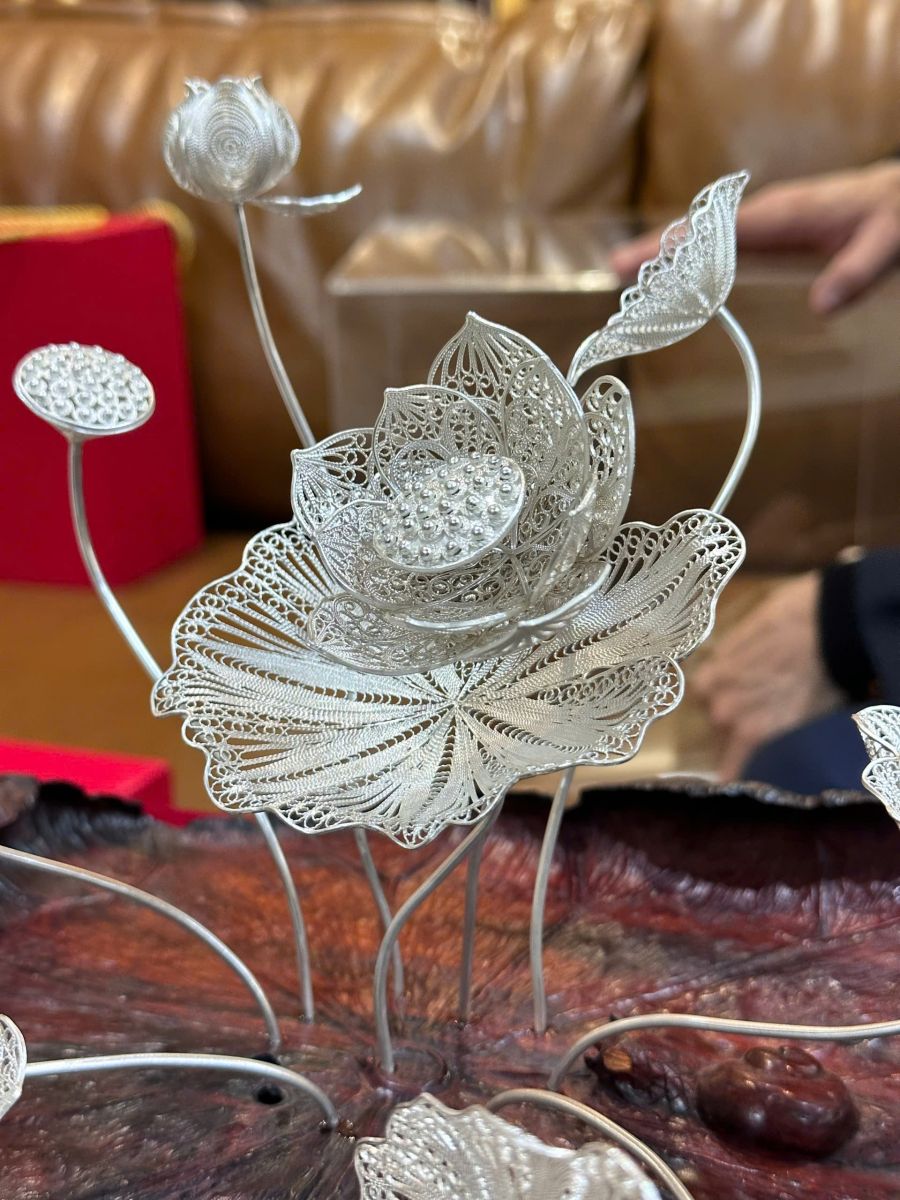 Sau khi khách hàng duyệt thiết kế, các nghệ nhân tài hoa sẽ bắt đầu công đoạn chế tác thủ công. Đây là lúc kinh nghiệm và sự khéo léo của người thợ được phát huy tối đa. Từ việc nung chảy bạc, kéo sợi, tạo hình, cho đến các kỹ thuật chạm khắc và đánh bóng cuối cùng, mọi bước đều đòi hỏi sự tập trung cao độ và độ chính xác tuyệt đối. Sản phẩm hoàn thiện, tiêu biểu là mô hình "Sắc Sen Bạc Nguyên Chất", không chỉ là một vật phẩm mà là tinh hoa của sự lao động nghệ thuật.