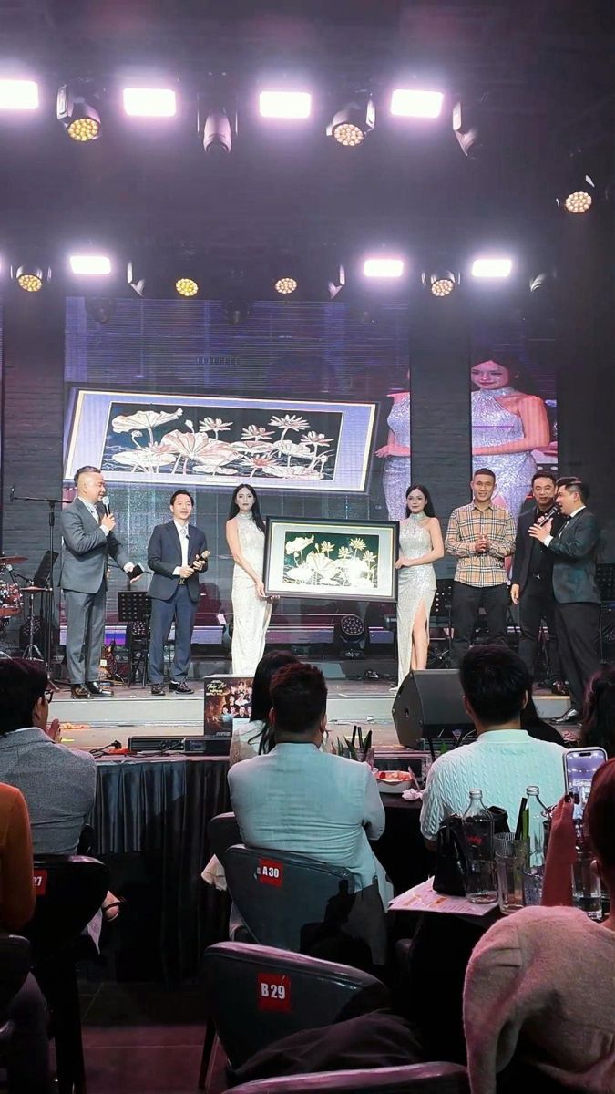 Trong đêm nhạc “Thắp lại nắng sau mưa”, khi ánh đèn sân khấu chiếu lên tác phẩm, vẻ đẹp của Sắc Sen càng trở nên rực rỡ và ý nghĩa hơn. Dưới bàn tay nâng niu giới thiệu của Đinh Lâm Tới, bức tranh không chỉ đơn thuần là một tuyệt tác nghệ thuật mà còn là lời nhắc về trách nhiệm cộng đồng.