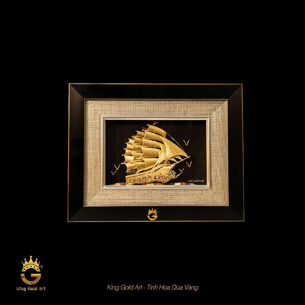 Những bức tranh thuyền buồm được chế tác từ lá vàng 24k dát mỏng, một chất liệu cực kỳ cao cấp và quý giá. Vàng luôn là kim loại tượng trưng cho sự giàu có, thịnh vượng và bền vững. Đặc biệt, khi vàng được dát mỏng trên nền vật liệu khác, nó không chỉ mang lại giá trị thẩm mỹ cao mà còn tạo ra một tác phẩm nghệ thuật mang đậm giá trị phong thủy. Việc sử dụng vàng 24k – loại vàng nguyên chất, tinh khiết nhất – càng làm tăng thêm giá trị của những bức tranh này.