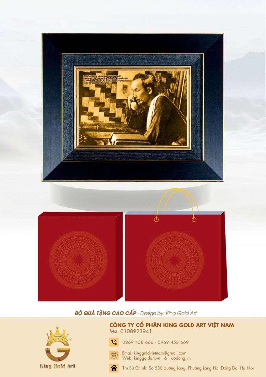 King Gold Art là thương hiệu nổi tiếng trong lĩnh vực chế tác quà tặng phong thủy và nghệ thuật từ đồng, vàng. Các sản phẩm tranh Bác Hồ bằng đồng của King Gold Art được thiết kế tinh xảo, ứng dụng công nghệ khắc hiện đại kết hợp với bàn tay tài hoa của nghệ nhân làng nghề.