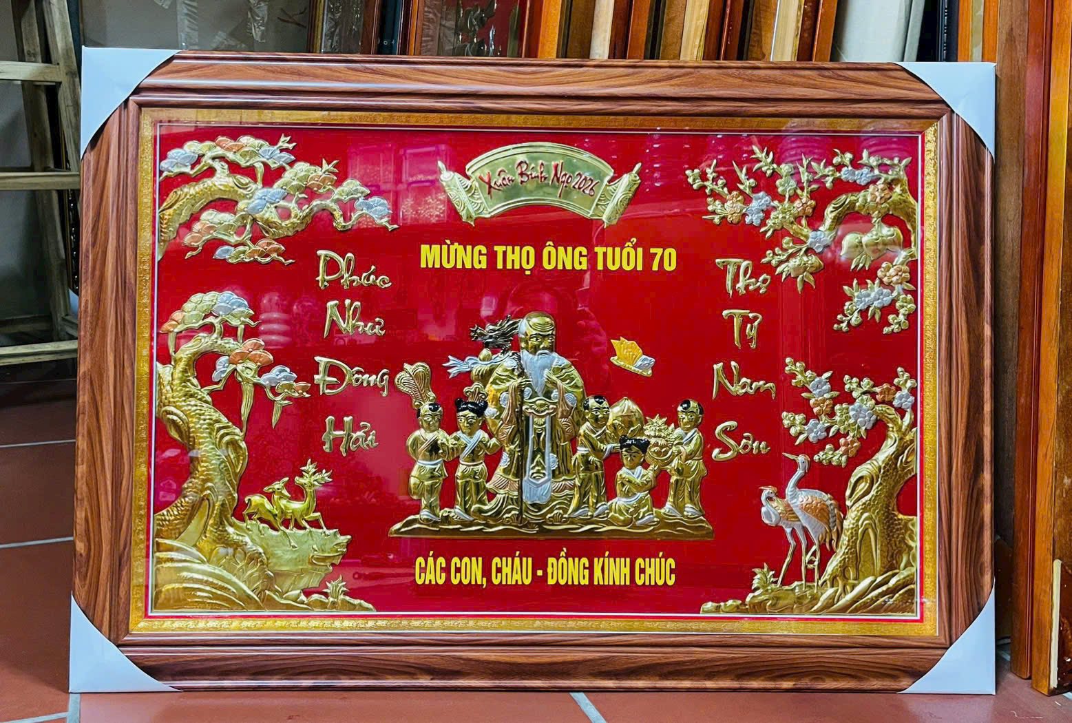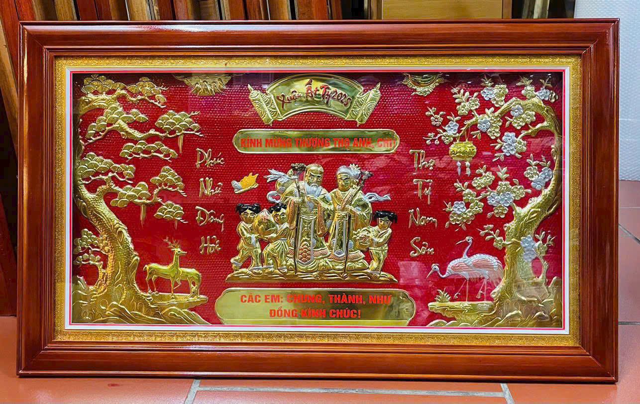 Không giống những món quà mang tính sử dụng ngắn hạn, tranh mừng thọ mạ vàng là món quà có giá trị lưu giữ lâu dài theo thời gian. Tranh có thể treo tại phòng khách, phòng thờ hoặc không gian sinh hoạt chung, trở thành điểm nhấn trang trọng trong ngôi nhà.