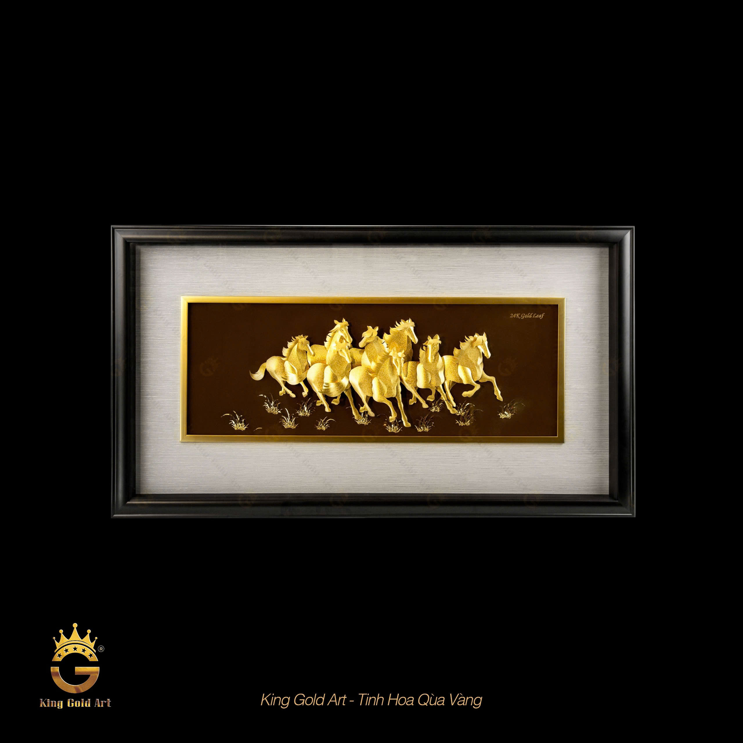 Vàng 24k, với màu sắc lấp lánh, không chỉ làm tăng giá trị của bức tranh mà còn biểu tượng cho sự thành công và vinh quang. Mỗi chi tiết trong bức tranh được chạm khắc tinh xảo từ vàng 24k thể hiện tay nghề điêu luyện của các nghệ nhân, mang đến một tác phẩm nghệ thuật hoàn hảo, kết hợp hài hòa giữa giá trị thẩm mỹ và ý nghĩa phong thủy sâu sắc.