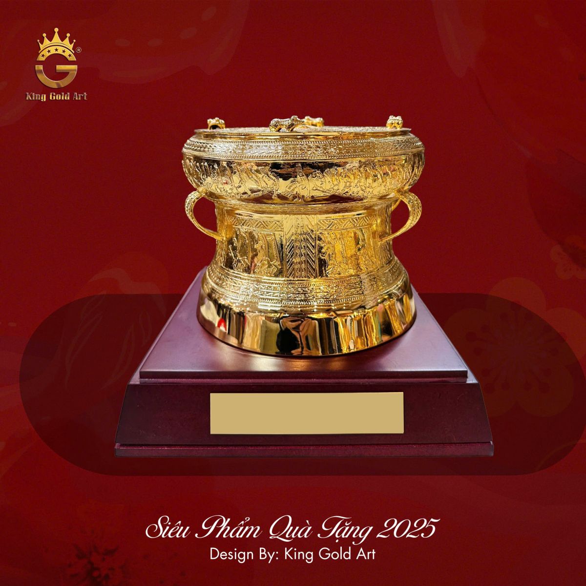 Trống đồng mạ vàng là một trong những phiên bản đặc biệt của trống đồng, thường được chế tác tinh xảo để làm quà tặng cao cấp. Quá trình mạ vàng không chỉ làm cho trống đồng trở nên lấp lánh, quý phái mà còn tăng thêm giá trị về mặt vật chất lẫn tinh thần. Trống đồng mạ vàng là món quà tặng tuyệt vời cho những dịp đặc biệt như lễ kỷ niệm, lễ tết, hay những dịp quan trọng trong đời sống cá nhân và cộng đồng.