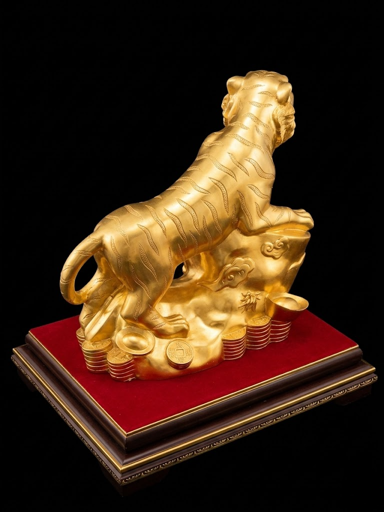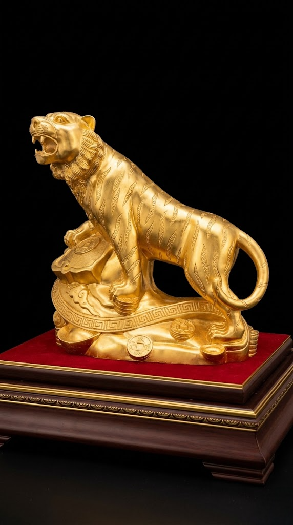 Tượng hổ đồng mạ vàng 24K biểu tượng quyền uy và giá trị truyền thống