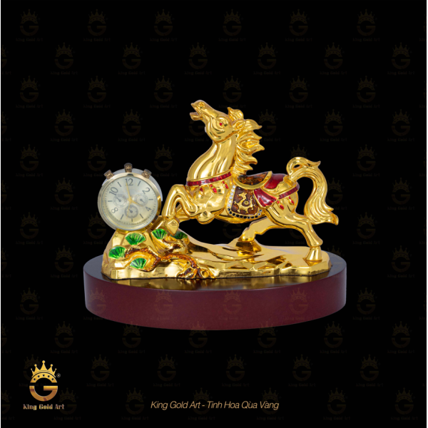 Từng đường nét, ánh nhìn, dáng đứng của ngựa đều toát lên thần thái mạnh mẽ, sống động như thật. Đặc biệt, lớp đồng dát vàng 24K cao cấp phủ trên bề mặt không chỉ tạo độ sáng bóng lấp lánh mà còn giúp sản phẩm bền bỉ với thời gian, không bị xỉn màu hay oxi hóa.