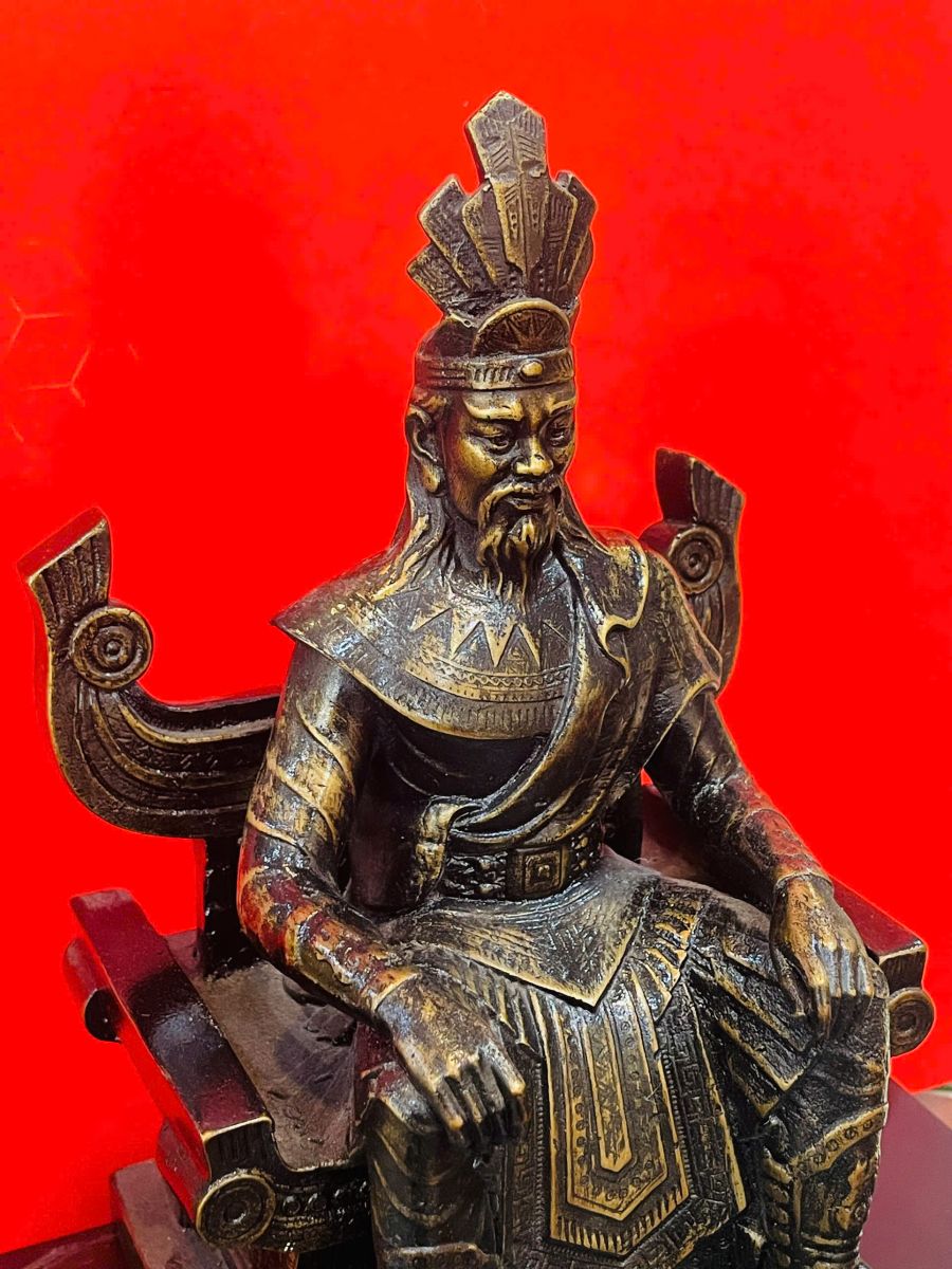 Bức tượng mang dáng vẻ uy nghi, bệ vệ, thể hiện khí chất của bậc đế vương khai quốc. Mỗi đường nét đều toát lên vẻ trang nghiêm, tạo nên một không gian vừa linh thiêng vừa đầy chiều sâu văn hóa.