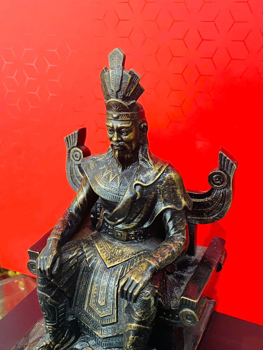 Không phải ngẫu nhiên mà tượng đồng luôn được đánh giá cao trong giới sưu tầm. Mỗi chi tiết trên tượng đều được chăm chút kỹ lưỡng: từ ánh mắt sắc sảo, vầng trán cao, bộ râu uy nghi cho đến trang phục và ngai vàng chạm khắc tinh vi.
