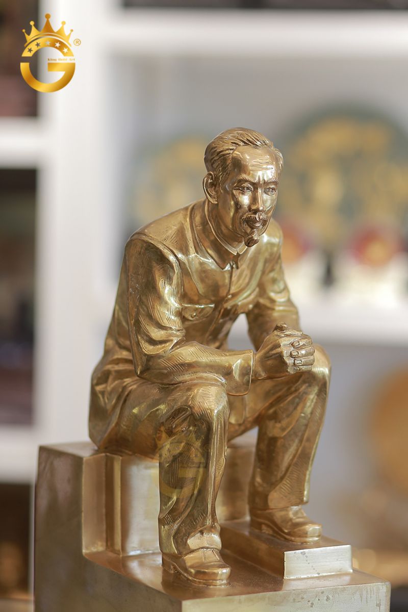 Tượng lãnh tụ Hồ Chí Minh được chế tác từ đồng mạ vàng, là sự kết hợp giữa nghệ thuật điêu khắc tinh xảo và sự tôn vinh lòng kính trọng đối với Chủ tịch Hồ Chí Minh. Mỗi sản phẩm đều được chế tác thủ công, mang đến sự hoàn hảo từ hình dáng đến từng chi tiết nhỏ. Những bức tượng này không chỉ là sản phẩm nghệ thuật mà còn là biểu tượng của lòng yêu nước, tinh thần kiên cường, và khát vọng độc lập tự do của dân tộc Việt Nam.