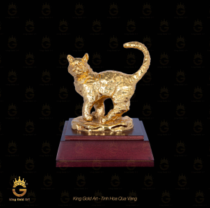 Tượng mèo vàng tại King Gold Art được làm từ đồng nguyên chất, mạ vàng 24K, đảm bảo độ bền và vẻ đẹp sang trọng.