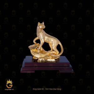 Tượng mèo vàng tại King Gold Art được làm từ đồng nguyên chất, mạ vàng 24K, đảm bảo độ bền và vẻ đẹp sang trọng.