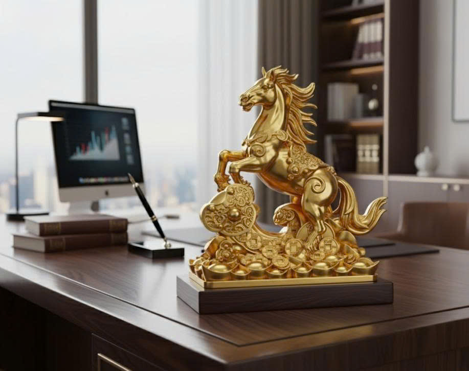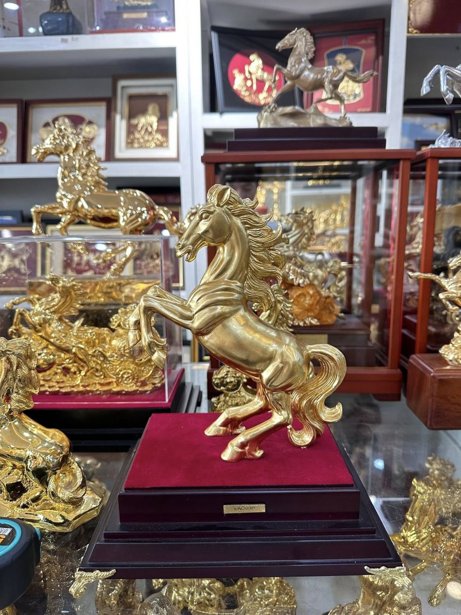 Dưới bàn tay nghệ nhân của King Gold Art, từng đường nét cơ bắp, bờm ngựa và thần thái chuyển động được thể hiện sống động, tạo nên cảm giác mạnh mẽ nhưng vẫn hài hòa, sang trọng.